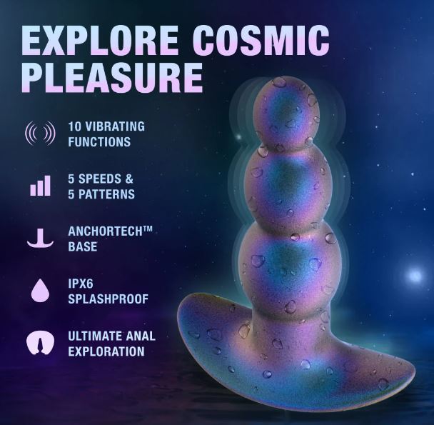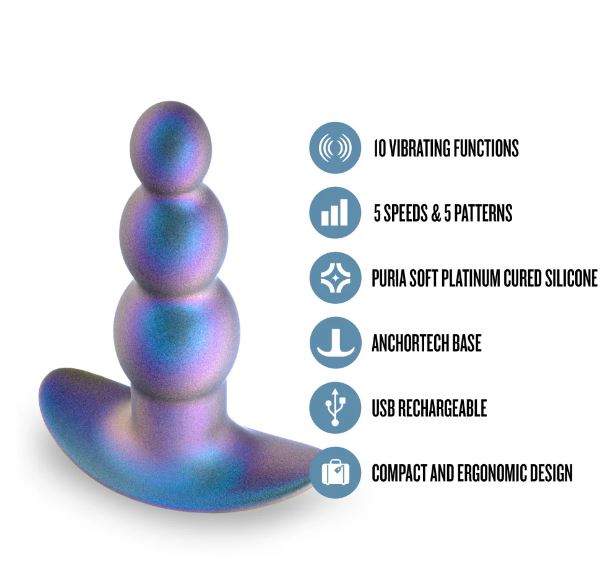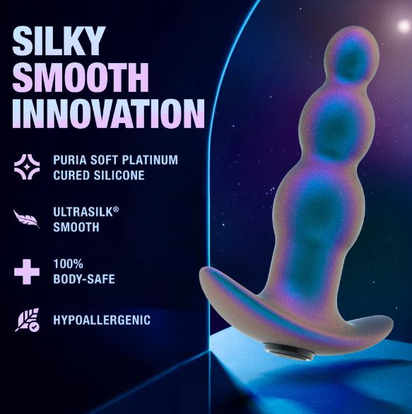 Journey to a new galaxy of cosmic pleasure with the Anal Adventures Matrix Expedition Plug! The Expedition Plug is perfect for anal training, featuring three beads in progressive sizes that allow you to play at your own comfort level. Explore 10 powerful vibration settings, including 5 speeds & 5 patterns, as you voyage through new pleasure galaxies that are out-of-this-world! Crafted from Puria®, 100% body-safe, platinum-cured silicone and wrapped in UltraSilk®, the Expedition butt plug offers a smooth, luxurious feel against the skin and is easy to clean. With our AnchorTech™ base, the plug’s design ensures secure placement and prevents over-insertion for long term wear. With USB charging, you'll enjoy up to 60 minutes of continuous vibration on a full charge, making every session seamlessly satisfying. Embark on an epic expedition into the vast universe of infinite sensation.