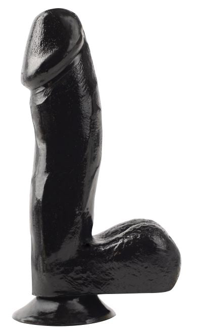 Basix Rubber Works Black Dark Skin Tone 6.5 inches Ballsy Dong with Suction Cup base from Pipedream Products. Dong is the perfect size for pleasure anytime. Great for beginners and experts alike, Basix dildos are soft and comfortable with flexibility that easily adapts to any of your favorite positions. The powerful suction cup sticks to most hard surfaces for hands free fun and doubles as a sturdy base that is compatible with most strap on harnesses. We hope you enjoy using this product as much as we like making it! Operating instructions: use plenty of a water based personal lubricant for an extra wet, extra wild experience. Care instructions: clean up is a snap after the fun with antibacterial toy cleaner and warm water. This just right dildo from made using phthalates free, latex free materials. A suction cup base is compatible with strap on harnesses and allows you to adhere this toy to any flat, non-porous surface for solo fun. Flexible and pliable, this comfortable dildo is a great fit for your erotic desires. Basix Dong is made of rubber which is 100% phthalate and latex free, environmentally safe and hypoallergenic. Pipedream hopes you enjoy using this product as much as they like making it! Item dimensions: length 6.5 inches, width 3.5 inches, height 1.75 inches, girth 5.25 inches, diameter 1.67 inches. Insertion length 5.25 inches. Bulk weight 9.80 ounces. Package depth 2 inches, width 6.5 inches, height 13 inches. Package shipping weight 13.00 ounces.