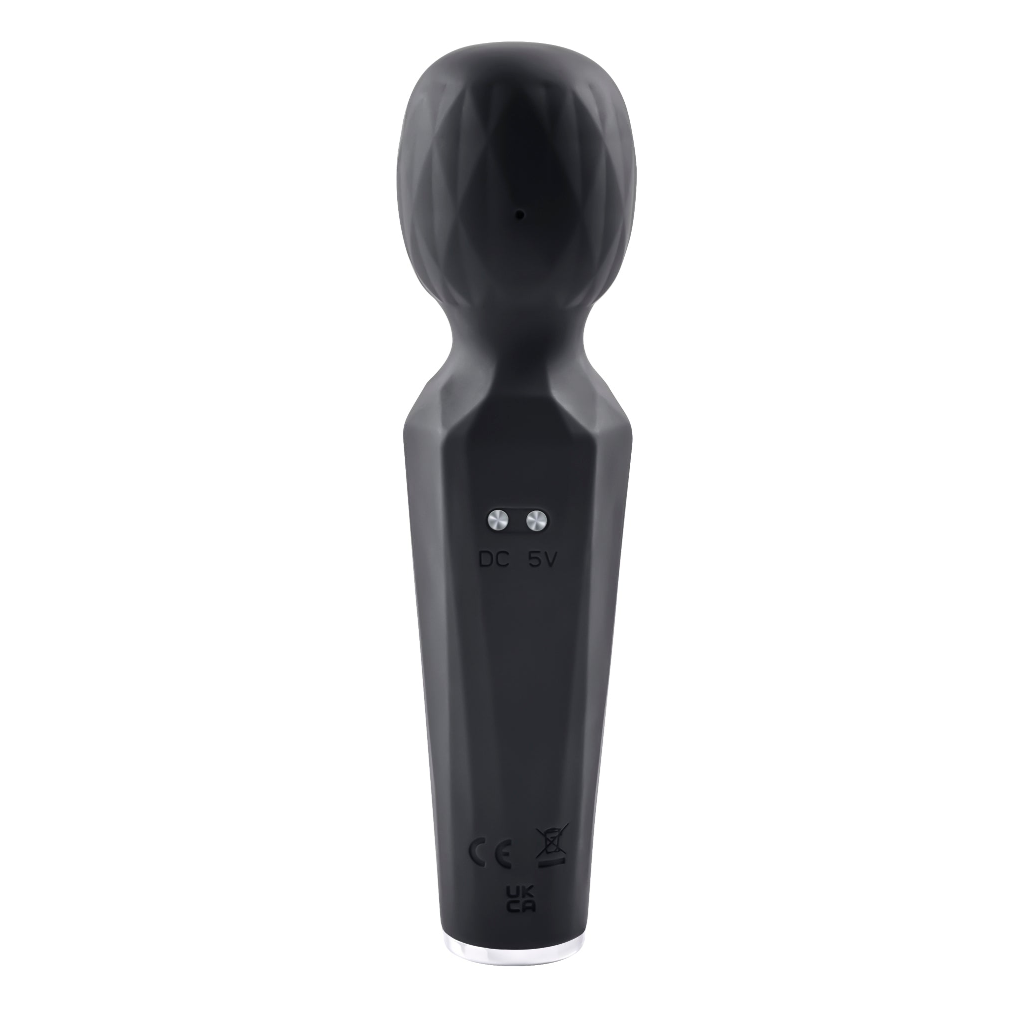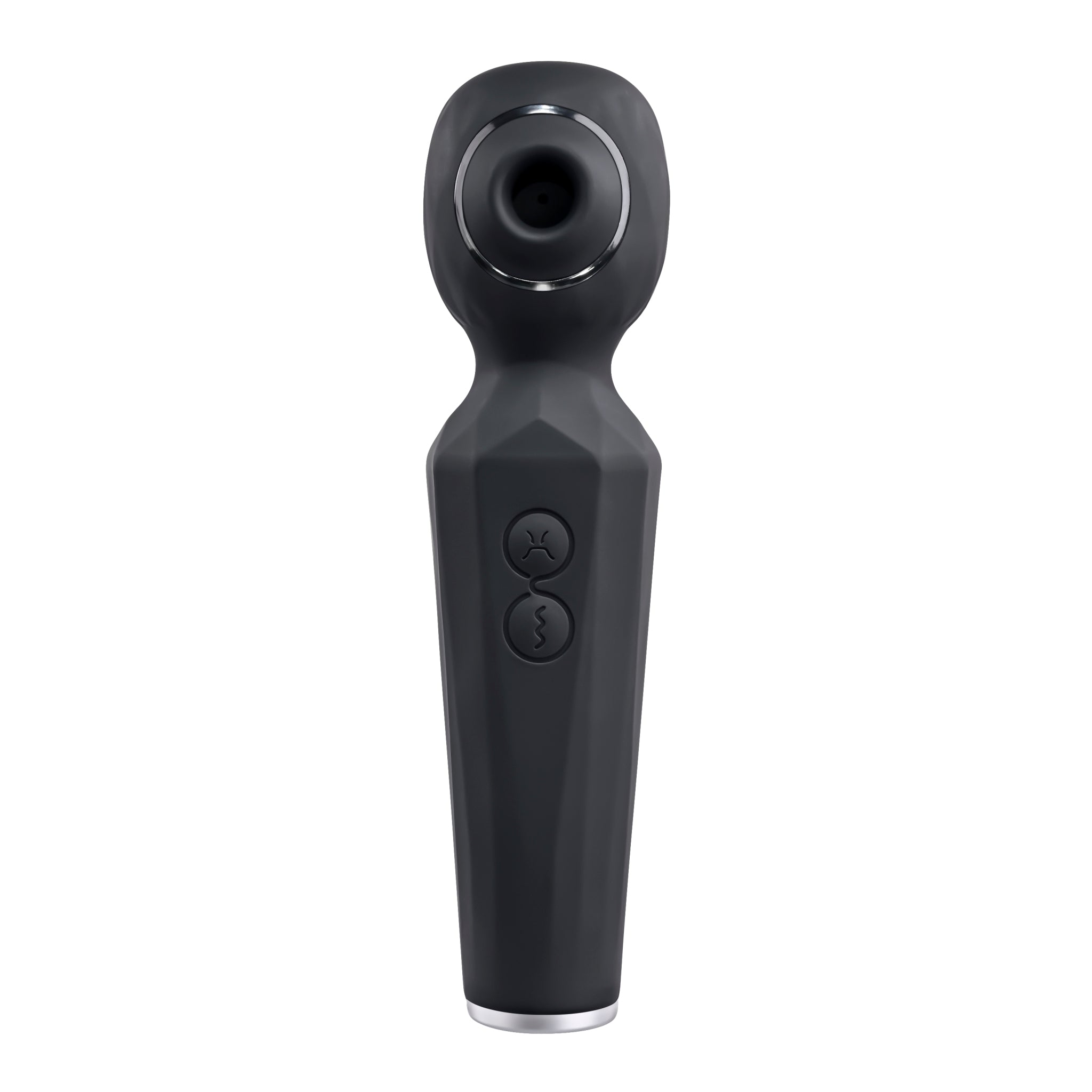 Features: sucking wand vibrator. Powerful vibrations in diamond textured, rigid wand head. 5 speed suction orifice on wand head. 8 vibrating speeds and functions in wand. 2 motors controlled separately. Textured handle for secure grip.
