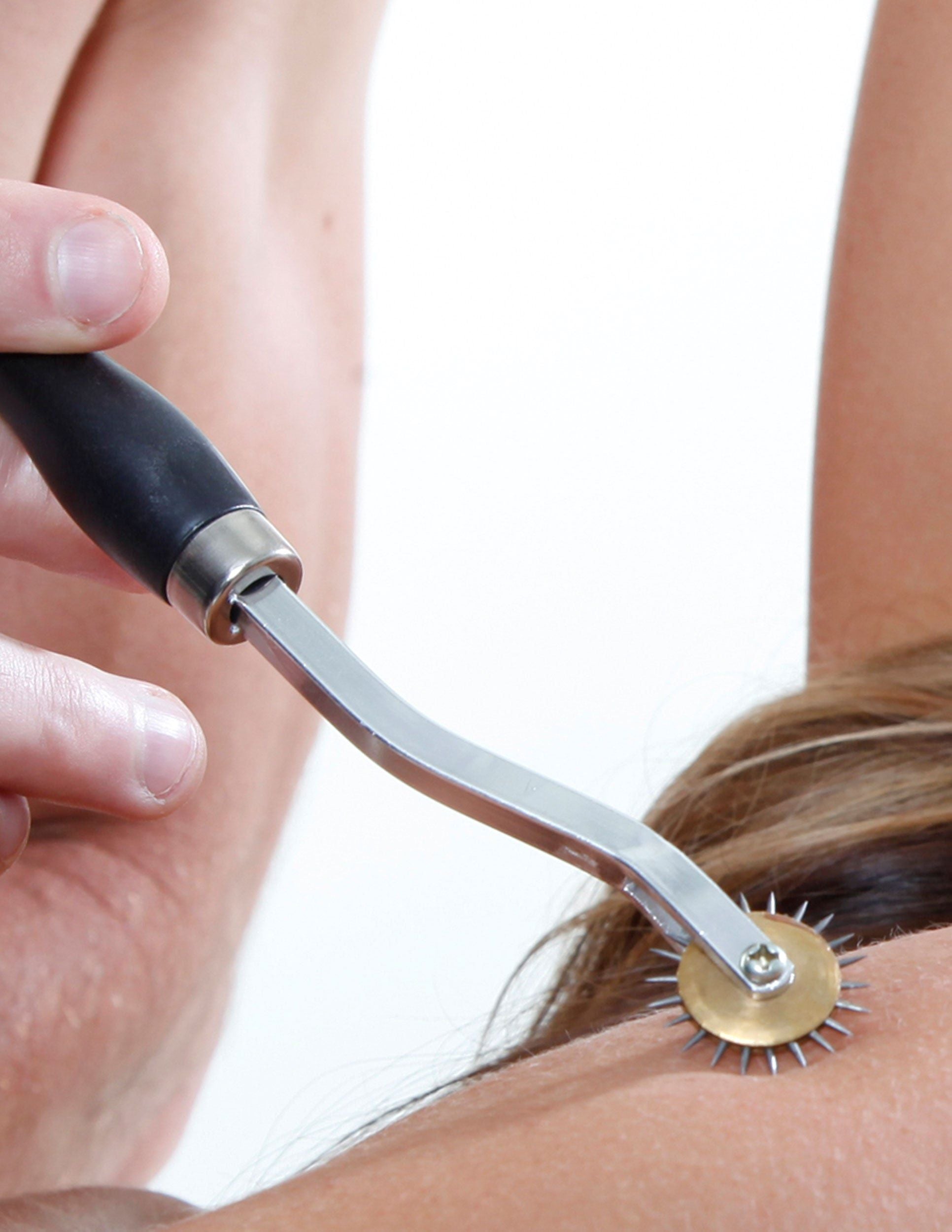 Fetish Fantasy Series Deluxe Wartenberg Wheel from Pipedream Products. Tickle, tease and please your lover with this medical grade Deluxe Wartenberg Wheel. Named after the famous neurologist, Dr. Robert Wartenberg, this Stainless Steel pinwheel delivers a tingly sensation as the prickly pins roll across the skin. Combined with a blindfold and restraints, the heightened sensory experience will leave you breathless. Materials Steel, Chrome. Package depth 1.5 inches, width 7.5 inches, height 2.75 inches. Package shipping weight 2.10 ounces. Package type box. Country of Origin China. Harmonized Tariff Schedule HTS Code: 7326190000. 90 days warranty. Pipedream Products - Fetish Fantasy Series. Categories: Bondage, Fetish, Kink, Whips, Paddles, Ticklers, Health and Beauty, Body Massager, Sex Toys for Couples. 2023.