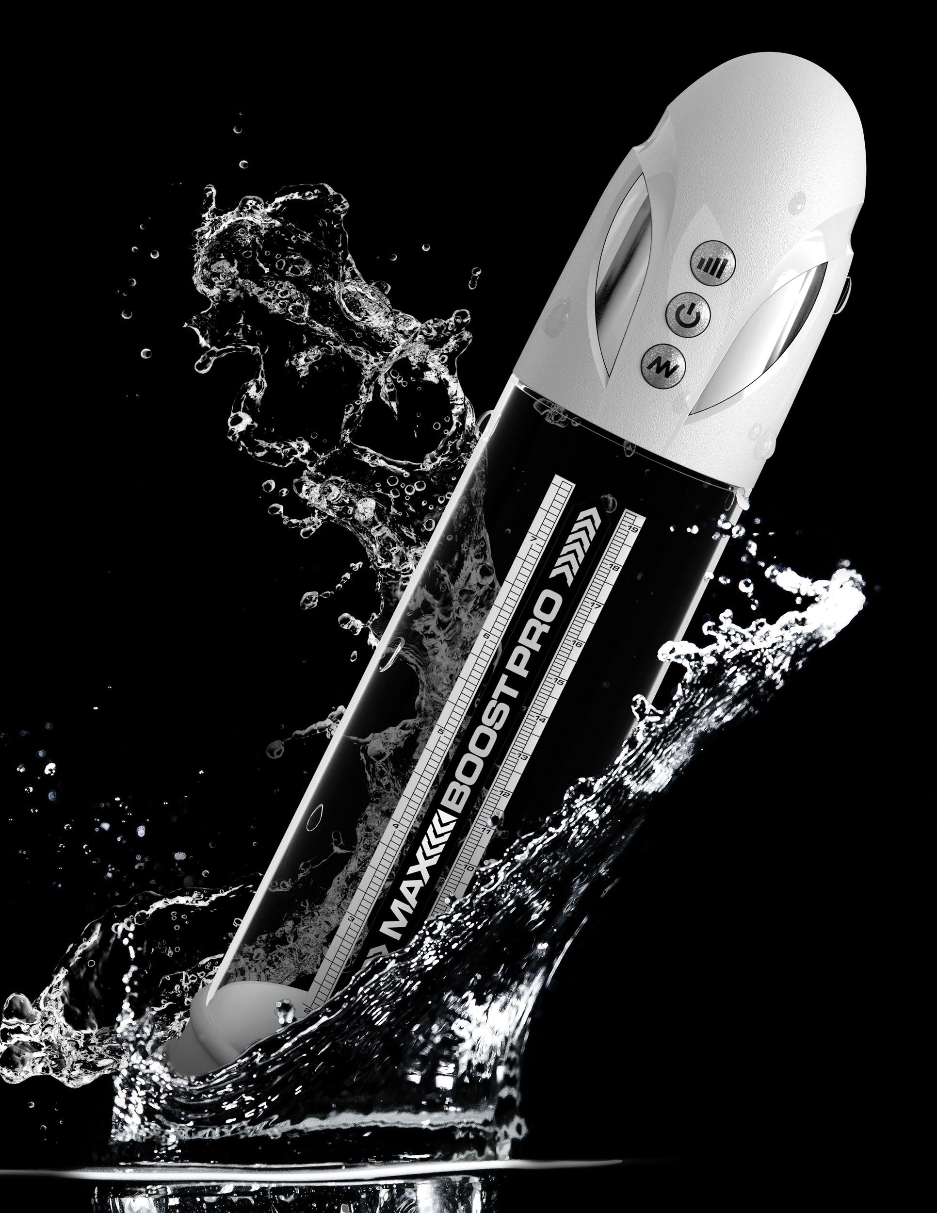 Max Boost Pro Flow White Clear Rechargeable Power Pump from Pipedream Products. Elevate Your Performance and Reclaim Confidence! Experience the power of automatic results while potentially unleashing stronger, more powerful, and longer lasting erections with the Max Boost Pro Flow Penis Pump! This revolutionary power pump has a completely waterproof IPX6 rating, meaning unlike other power pumps on the market, it can be used in the shower, tub, or spa and can even be filled with water without you having to manually pump up the pressure. Simply sit back and relax and let the Pro Flow do all the work. Choose from four constant suction speeds, four automatic suck and release pattern settings, or a manual pump mode, all built into the in line waterproof rechargeable pump.The bright LEDs change from green, to yellow, to red, indicating the amount of pressure inside of the tube and the LEDs can be turned off if so desired. Just imagine unlocking new levels of intimacy and the satisfaction of heightened pleasure for both you and your partner.