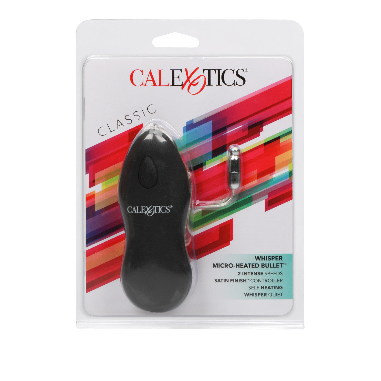 Whisper Micro Heated Black Vibrator Pleasure Toys from California Exotic Novelties. Get the 2 speed Whisper Micro Heated Bullet in black for discreet massage and fun at home or away. This handy little massager is perfect for intimate massage, stimulation or relaxation anytime and anywhere. Plus it comes with a whisper quiet motor to keep your private playtime as discreet as possible. The micro bullet is made with a smooth, high quality silver plated finish. It is safe to use on your skin and can be used anywhere on the body, and is especially fantastic for your erogenous zones and your most intimate areas. Attached by a cord to a simple control pad, you can control the vibrating pleasure function from one single push button. The micro bullet features a pinpoint tip that heats up with the powerful vibrations. The comforting, arousing warmth together with the 2-speed vibrating action will help to increase blood flow and circulation, while giving you the ultimate bodily stimulation for foreplay or private playtime. Whisper quiet, soft Rubber Cote, 2 speed micro-bullet heats up with powerful vibrations. Ergonomic battery pack with EZ push button control. Vibrating sex toy requires 2 AA batteries not included. Do not leave batteries in the vibrator between uses. A water based lubricant is recommended. Made using phthalate free, non-toxic materials: ABS plastic with silver plating bullet. Micro bullet vibrator measures 1 inch long by .2 inch wide. 1 year warranty. Whisper Micro Heated Bullet is a registered trademark for California Exotic Novelties. Categories: Vibrators, Pleasure Toys, Bullets and Eggs Vibrators, Sex Toys for Women, Vibrating Bullets and Eggs. 2023.
