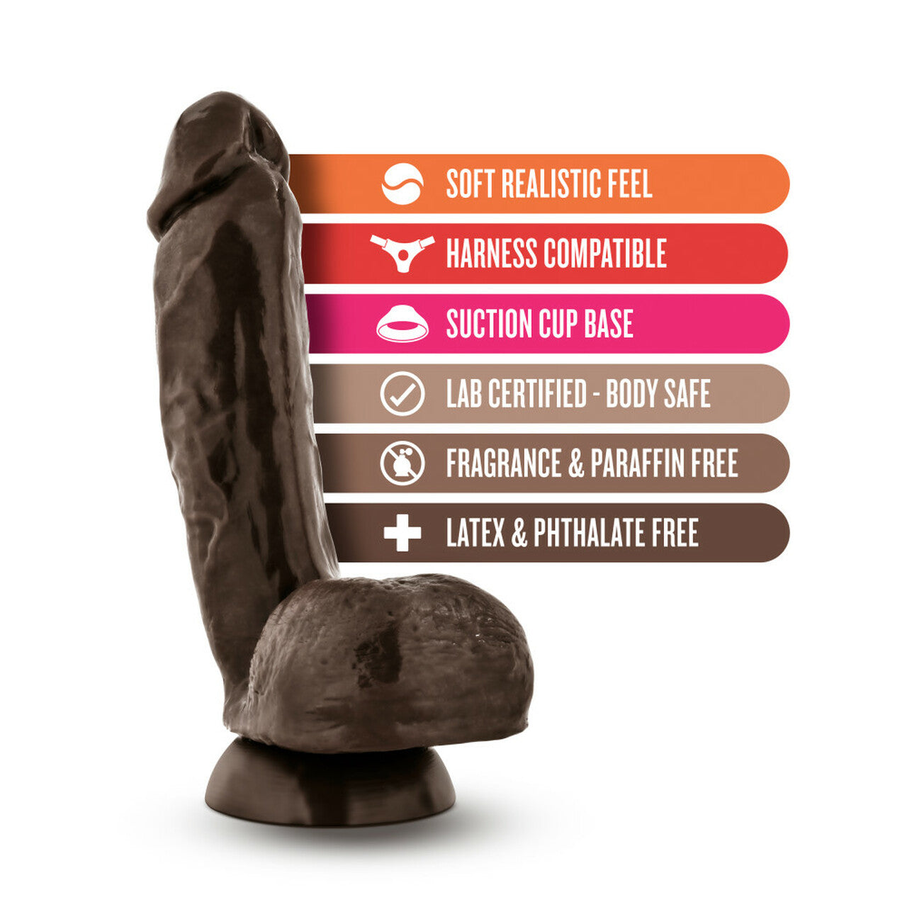 Blush Novelties X5 series X5 Hard On Dildo Brown. This X5 Hard On Realistic Dildo by Blush Novelties looks and feels like the real thing. It is made to please and satisfy even the most discriminating of dildo connoisseurs. The suction cup makes the Hard On harness compatible and is built for the cowboy or cowgirl in you, while the fleshy balls provide a cushion for a wild ride. Giddy Up! You can also suction this to any flat surface, headboard, foot board, shower door, wall, or even explore with a sturdy mirror! The Hard On is made from medical grade material safe for all skin types even the most sensitive ones. Large dildo feels soft and realistic plus hand sculpted for a look so real it is lifelike. Smooth skin long cock is thick enough to satisfy the most demanding lover. Just the right level of softness allows the Hard On to feel just like the real thing. Flexible shaft makes this an excellent sex toy for vagina, g-spot exploration in women or prostate massage in men. Suction cup base for solo and partner play. Special features realistic penis feel, waterproof non-vibrating. Pleasantly scented sex toy unisex use. Dildo dimensions Length 8.5 inches. Insertable 6.5 inches. Width 2 inches. Circumference 6.25 inches. Bulk weight 16.2 ounces. Made using phthalate free, non-toxic materials Silicone shaft. How to use: prepare apply lube to dildo. Cleanse and care run water and apply a mild soap or wipe with a choice sex toy cleaner, then let air dry. Apply a light coat of corn starch and wipe excess to refresh dildo. Product package dimensions: 10.748 inches height by 4.3 inches width by 2.157 inches depth. Product weight with package 19.5 ounces. X5 Hard On Dildo from Blush Novelties. Blush Novelties - X5. Categories: Dildos and Dongs, Dildo and Dongs Realistic, Large Realistic Dildos. Restricted, Amazon Restricted. 2022.